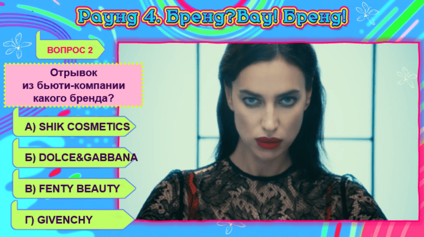 В этом раунде викторины для женщин участники смотрят короткие рекламные видео, в которых нужно угадать бренд.