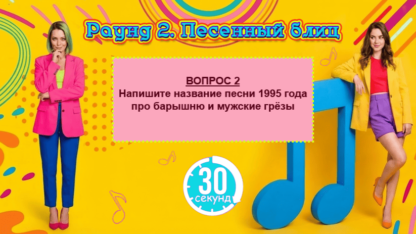 Во втором раунде квиза для девушек нужно будем угадать песню по 5 секунд.